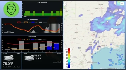 Current Weather, Forecasts, Air Quality Index, Graphs, Weather Maps, and Weather Radar can all easily be added to your Screens.